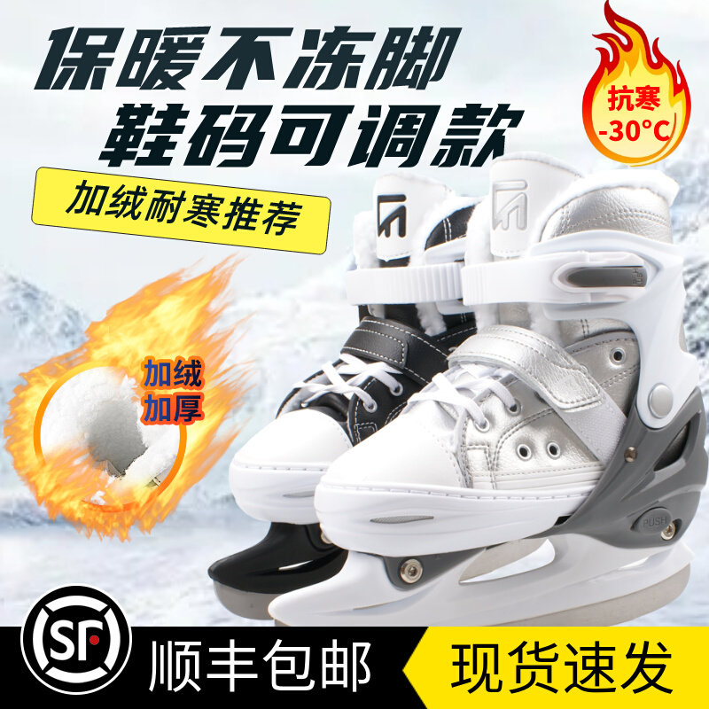 热度正品花样冰刀鞋花式女士白色溜冰鞋儿童初学滑冰鞋保暖真冰鞋