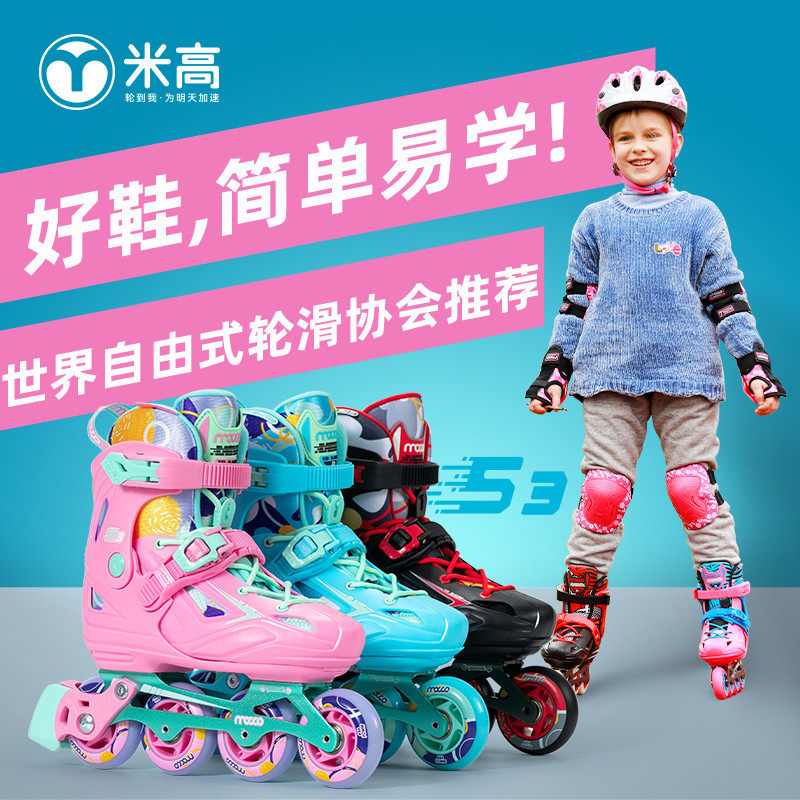 米高轮滑鞋儿童溜冰鞋初学者全套专业滑轮鞋女童滑冰鞋男童旱冰鞋