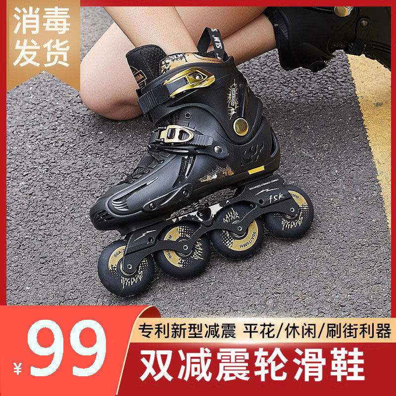SLM溜冰鞋成人直排轮男女初学轮滑鞋成年专业旱冰平花闪光鞋