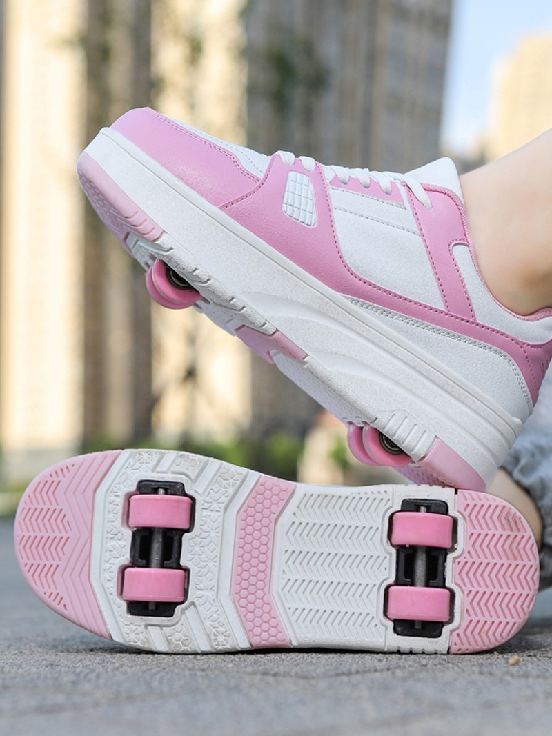 成人男女双排皮款绿色溜冰鞋四轮旱冰鞋粉紫蓝色闪光轮双排轮滑鞋