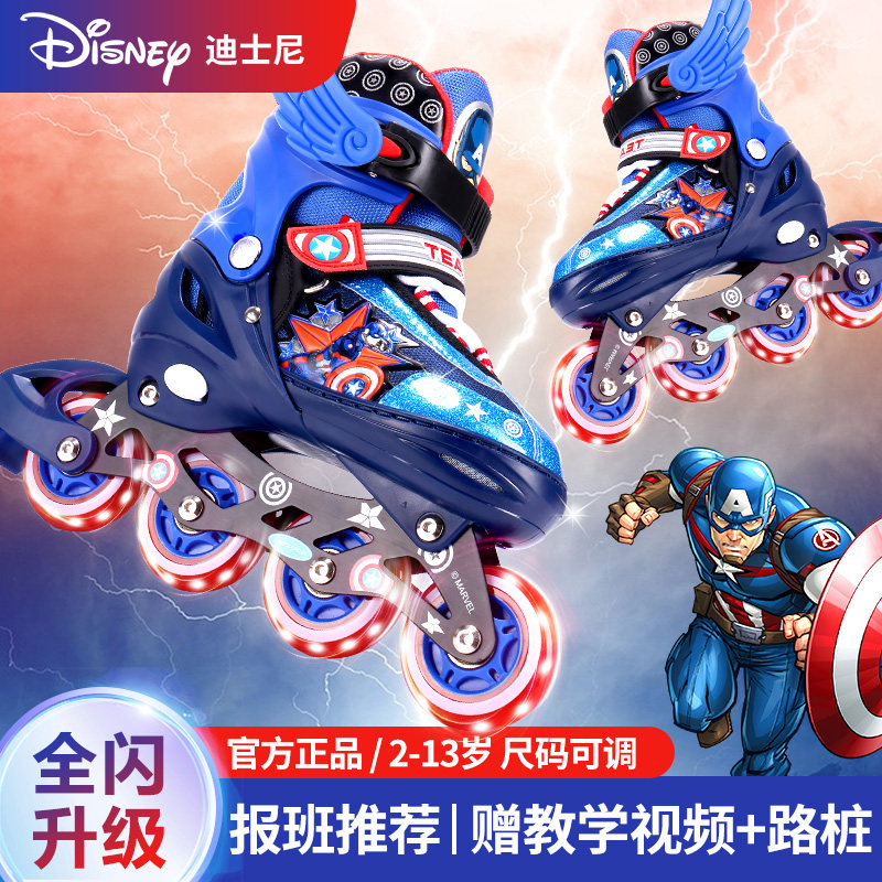迪士尼溜冰鞋男童初学者套装2023新款滑冰鞋女旱冰儿童轮滑鞋男孩