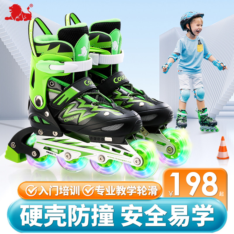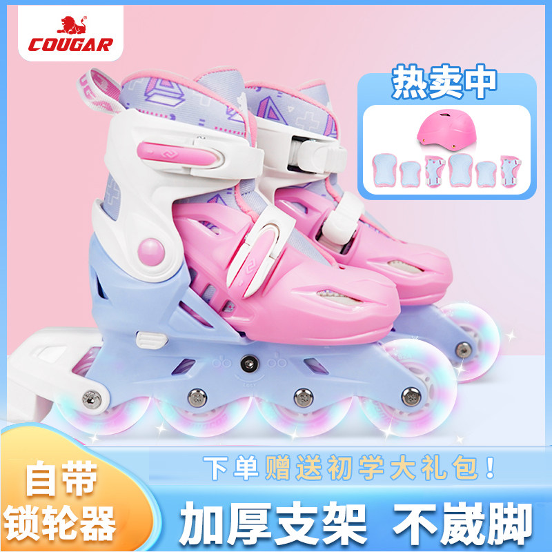 美洲狮轮滑鞋儿童初学者专业直排溜冰鞋女童滑冰鞋滑轮旱冰鞋男童