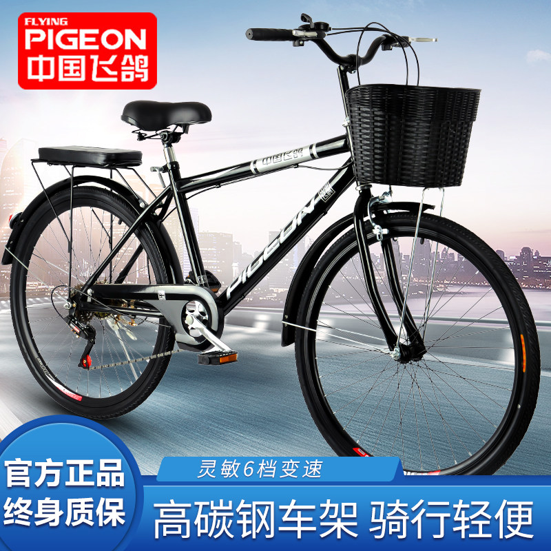 飞鸽自行车男式成人26寸变速三轴承实心胎城市通勤脚踏车女上班代