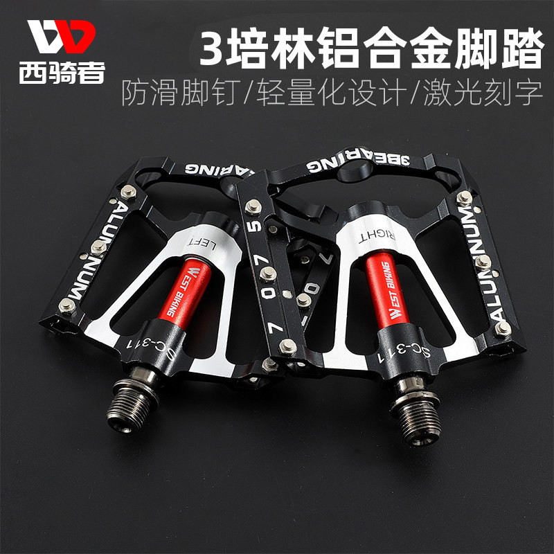 西骑者自行车脚踏三培林轴承山地车脚蹬铝合金防滑脚踏板单车配件