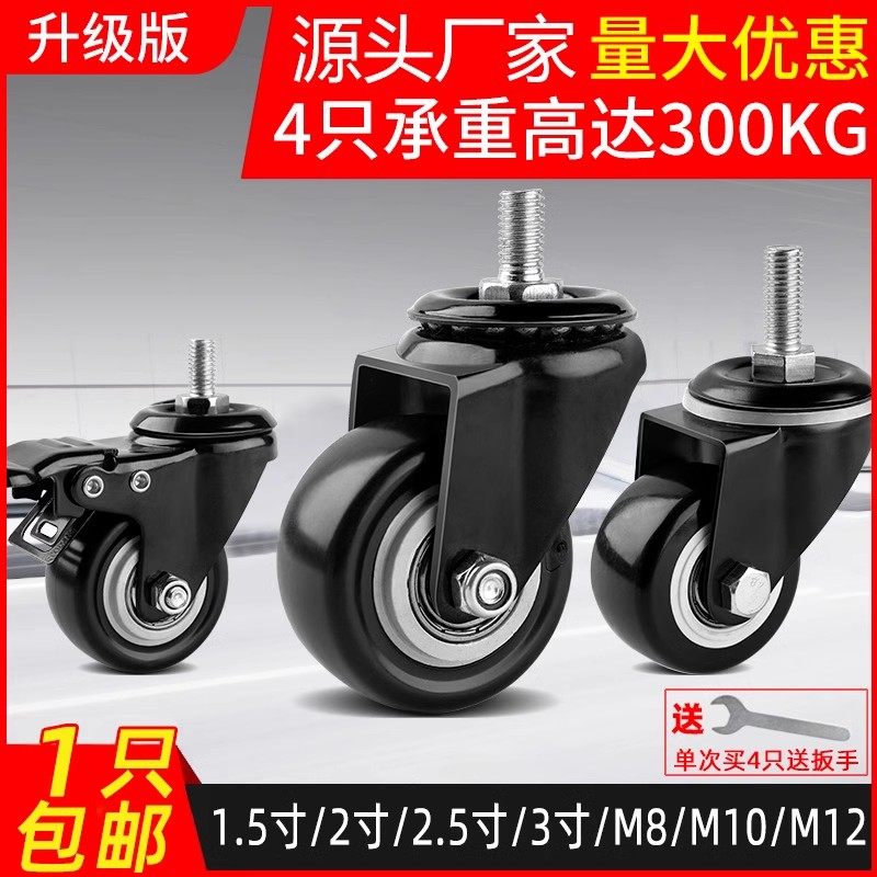 万向轮推车轮子1.5寸2寸脚轮M8M10M12丝杆双轴承万向轮静音刹车轮