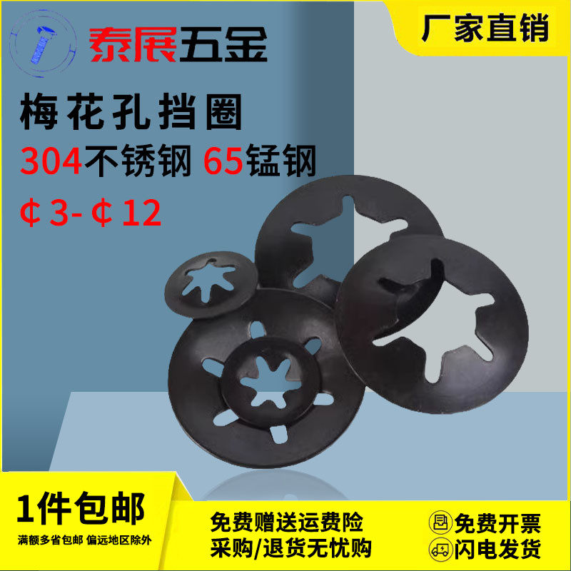 梅花孔挡圈65锰钢发黑轴承夹挡圈304不锈钢M3-M12梅花型轴夹挡圈