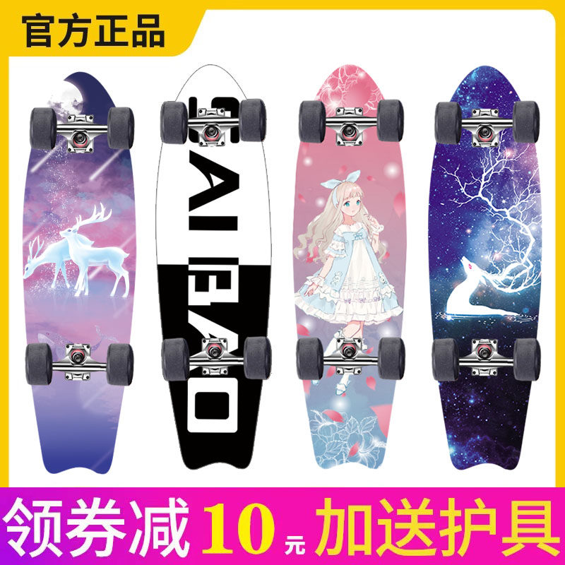 滑板初学者女生专业大鱼板成年人儿童代步刷街小鱼板四轮短滑板车