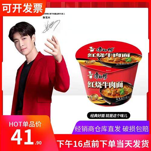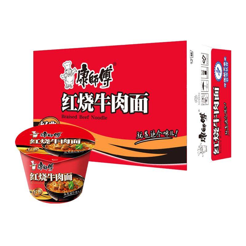 康师傅红烧牛肉面经典桶110g*12桶整箱装方便面泡椒鲜虾鱼板泡面