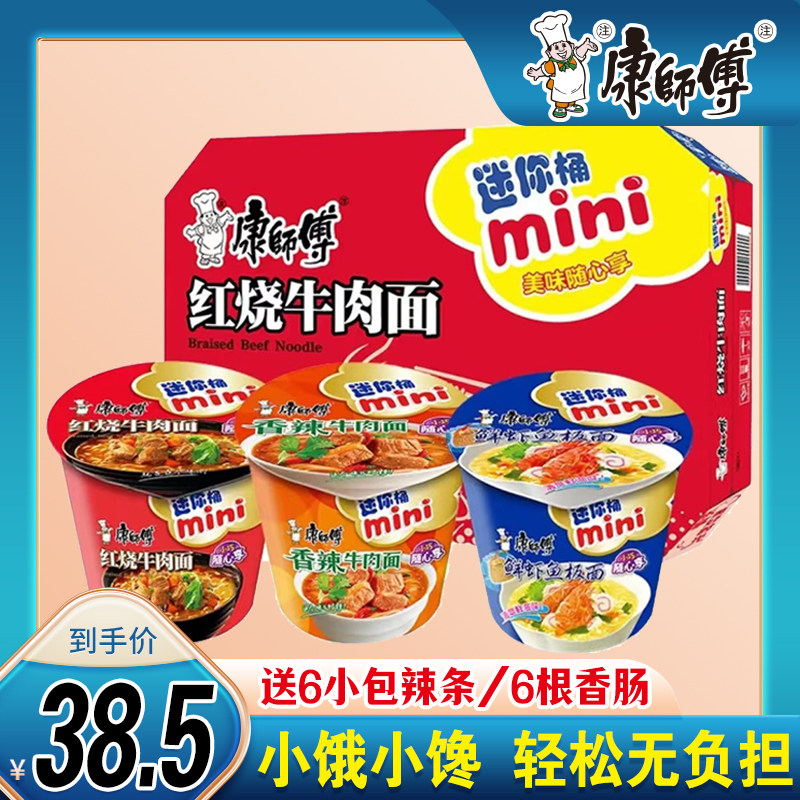 康师傅迷你杯桶装方便面红烧牛肉香辣牛肉鲜虾鱼板多味可选整箱特