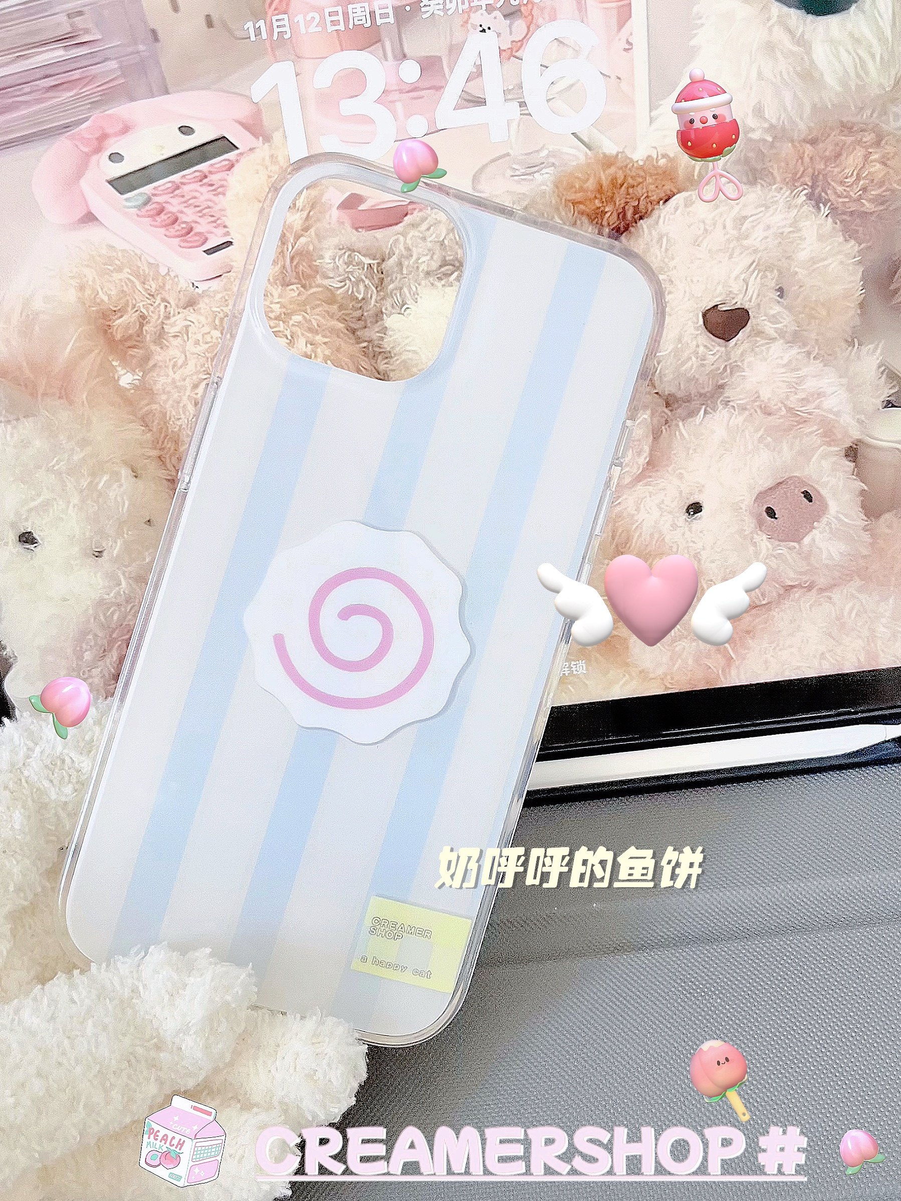 【猫咪爱吃鱼饼】奶精商店清冷感蓝色条纹卡通鱼板imd双层手机壳苹果iPhone14/15/iPhone15promax