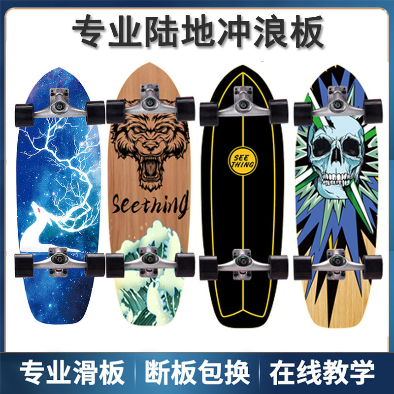 陆地冲浪板板面双翘路冲大鱼板专业枫木光滑板 diy定制订做印logo