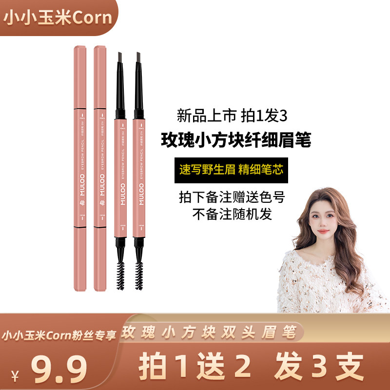 3支装 MULOO目录玫瑰小方块纤细眉笔防水自然持妆不易晕染野生眉