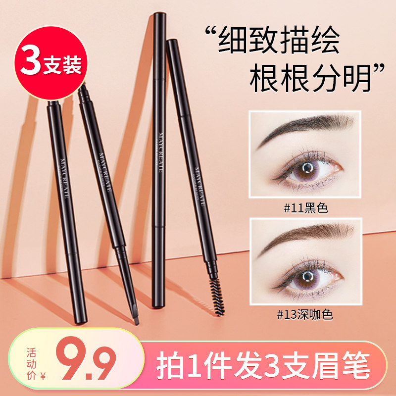 Maxfine/3支 极细眉笔女超细防水汗自然持久不脱色棕色正品旗舰店
