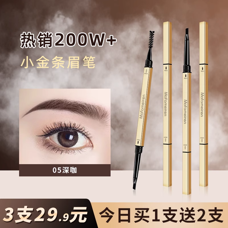 3支装 MULOO目录小金条双头眉笔防水自然持妆不易晕染野生眉