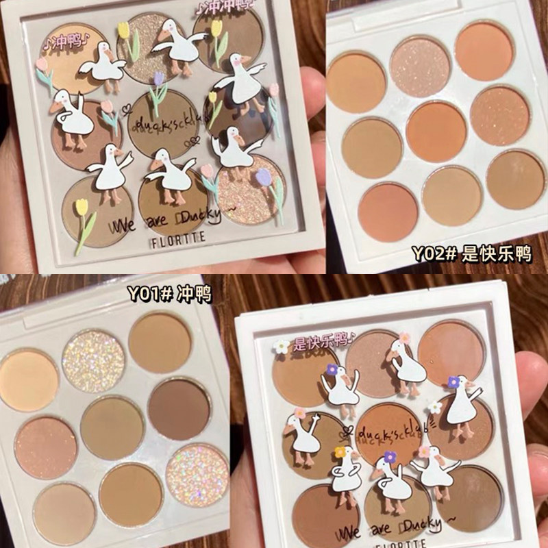 FLORTTE花洛莉亚冲鸭眼影盘四色九大地色高光双面煎蛋落利亚小众