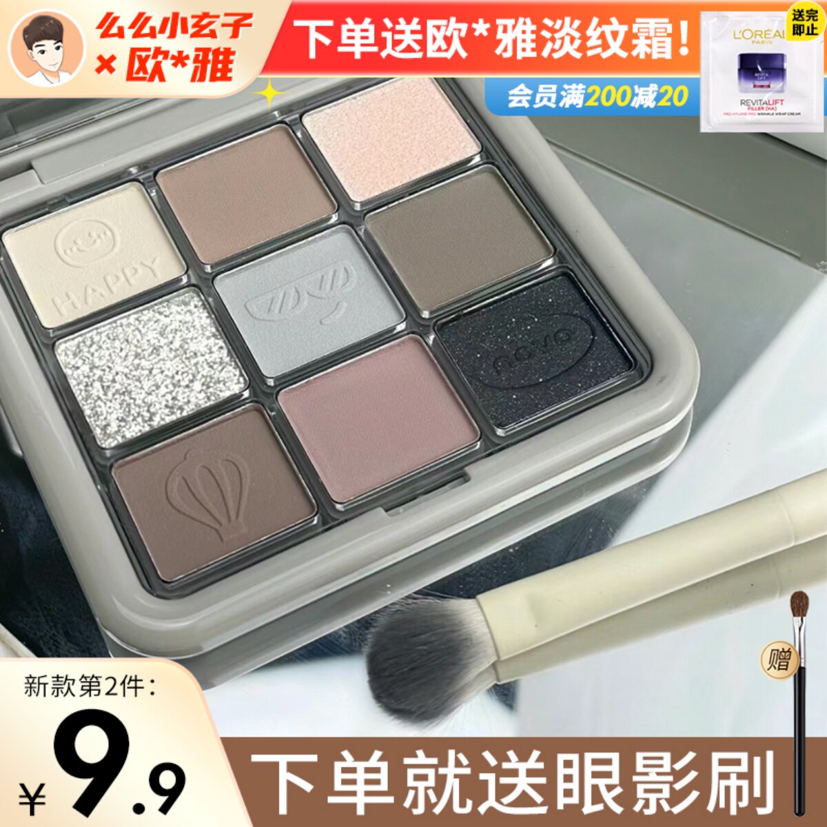 novo九色眼影盘大地黑色烟熏水泥盘ins2023珠光哑光奶茶学生平价