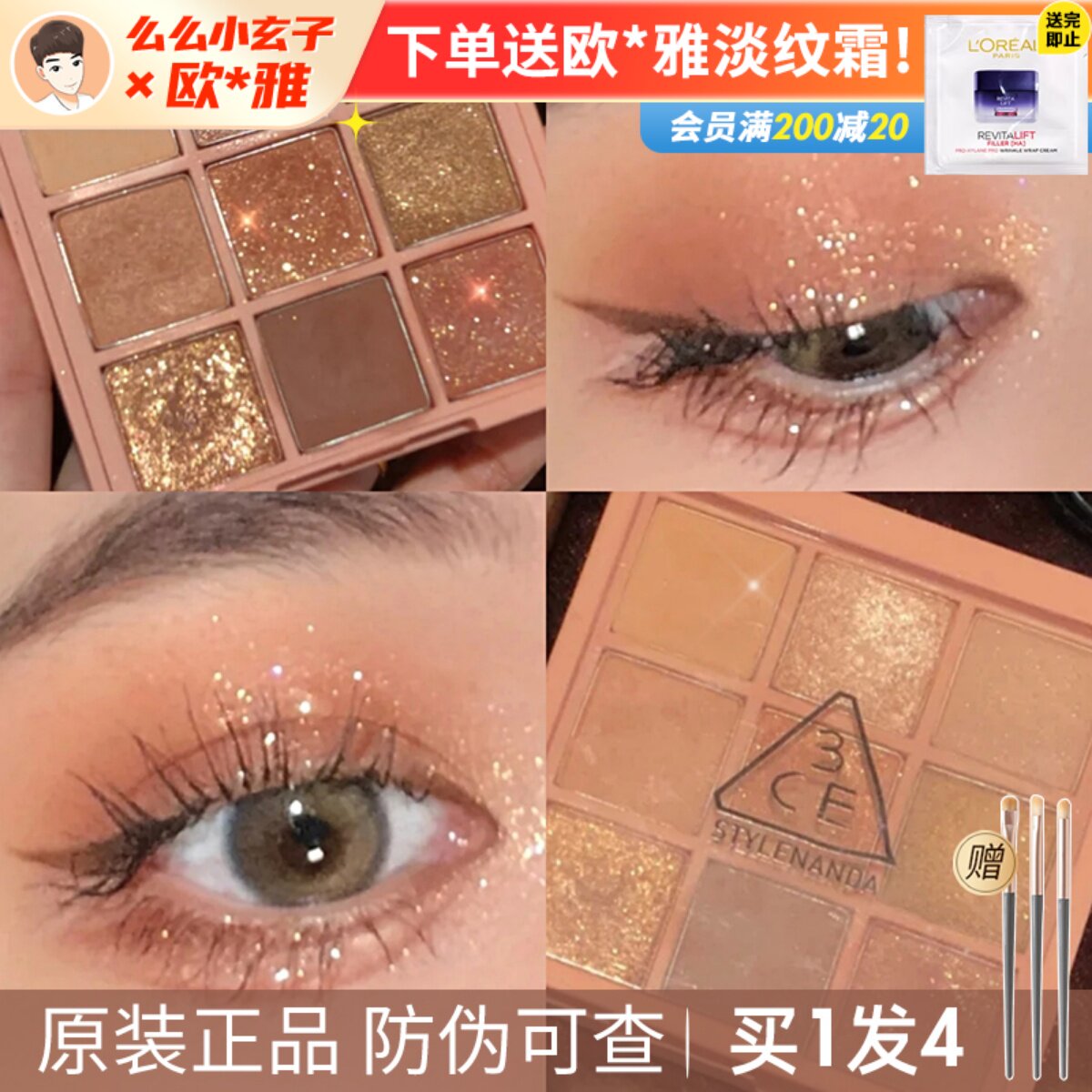3CE眼影盘芋泥盘水泥smoother黄油蓝绿色12色九宫格大地奶茶哑光