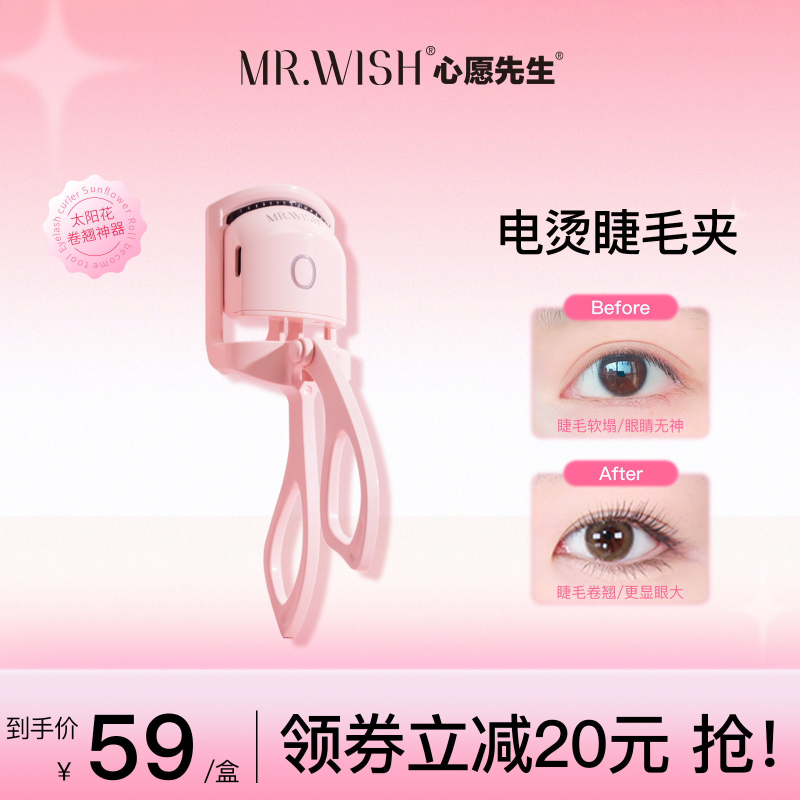 Mr.wish/心愿先生电烫睫毛夹持久定型加热充电动太阳花卷翘神器
