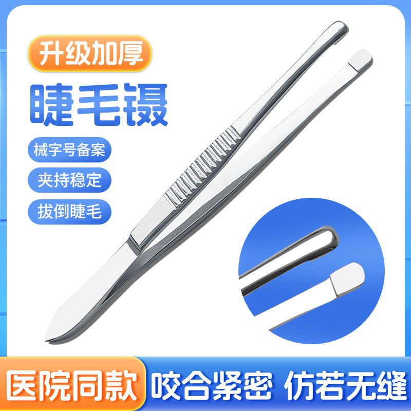 医用镊子夹外科手术医疗器械眼科拔倒睫毛不锈钢加厚防滑圆头镊