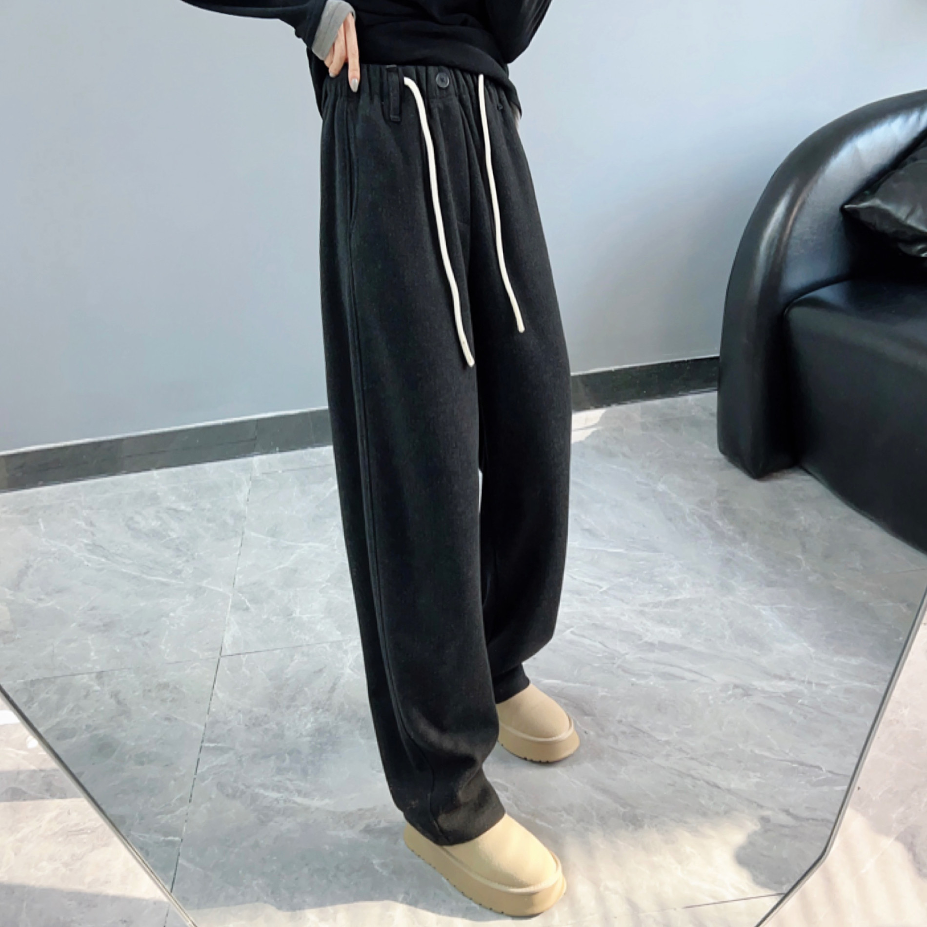 梨形身材毛呢休闲裤女秋冬胖妹妹mm高腰显瘦搭配马丁靴的哈伦裤子
