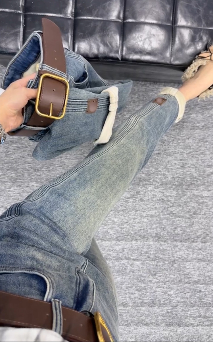 2023秋季新款牛仔裤大码高腰弹力哈伦裤女加绒胖mm秋冬显瘦萝卜裤