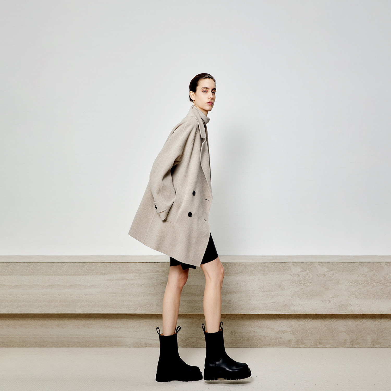 戎美【DY0517779】M系经典嵿奢 真丝+羊毛双面尼中长款双面尼大衣