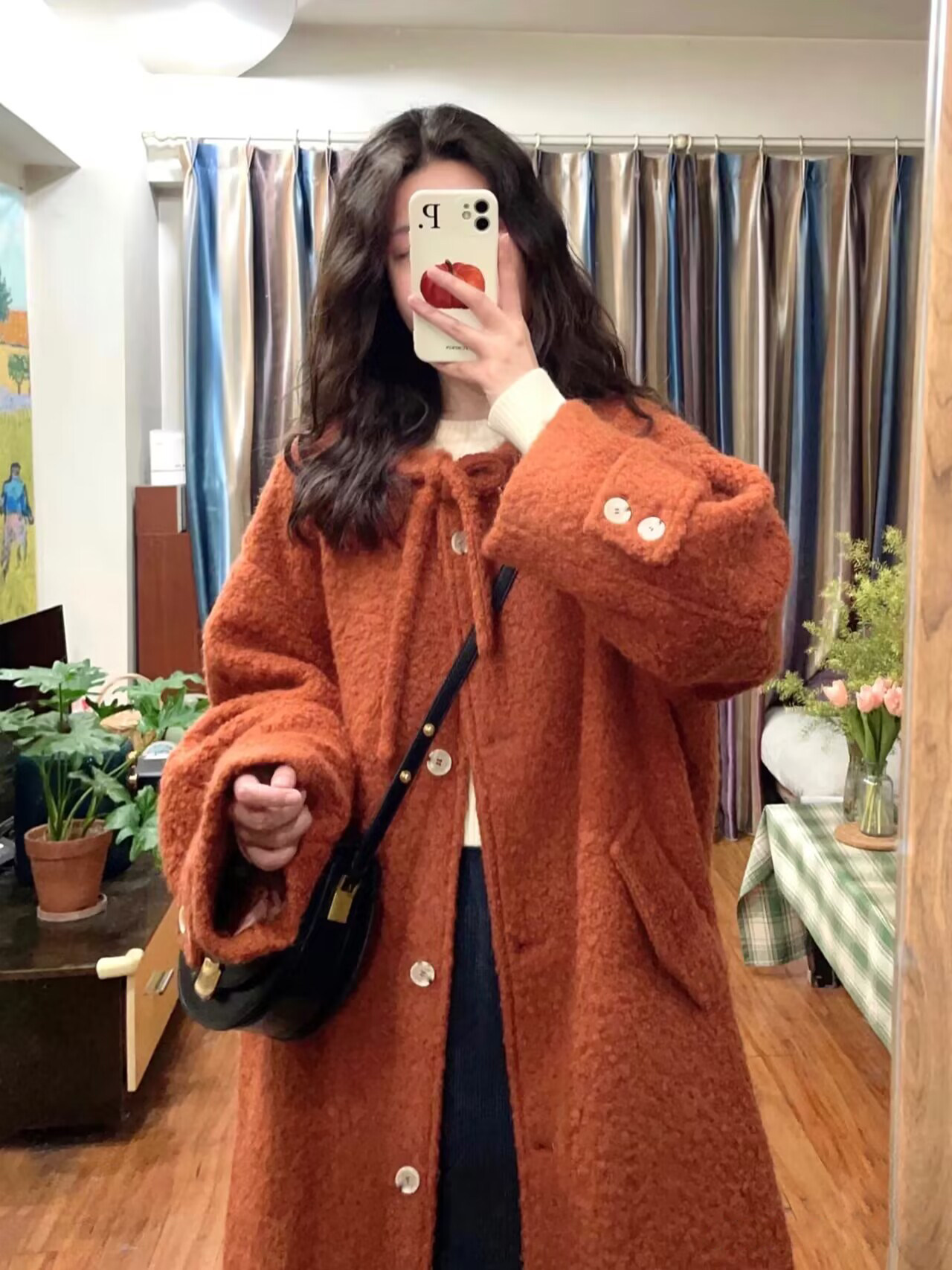 2023冬日限定北欧周末/圈圈羊毛包裹感圣诞新年战衣呢大衣外套女