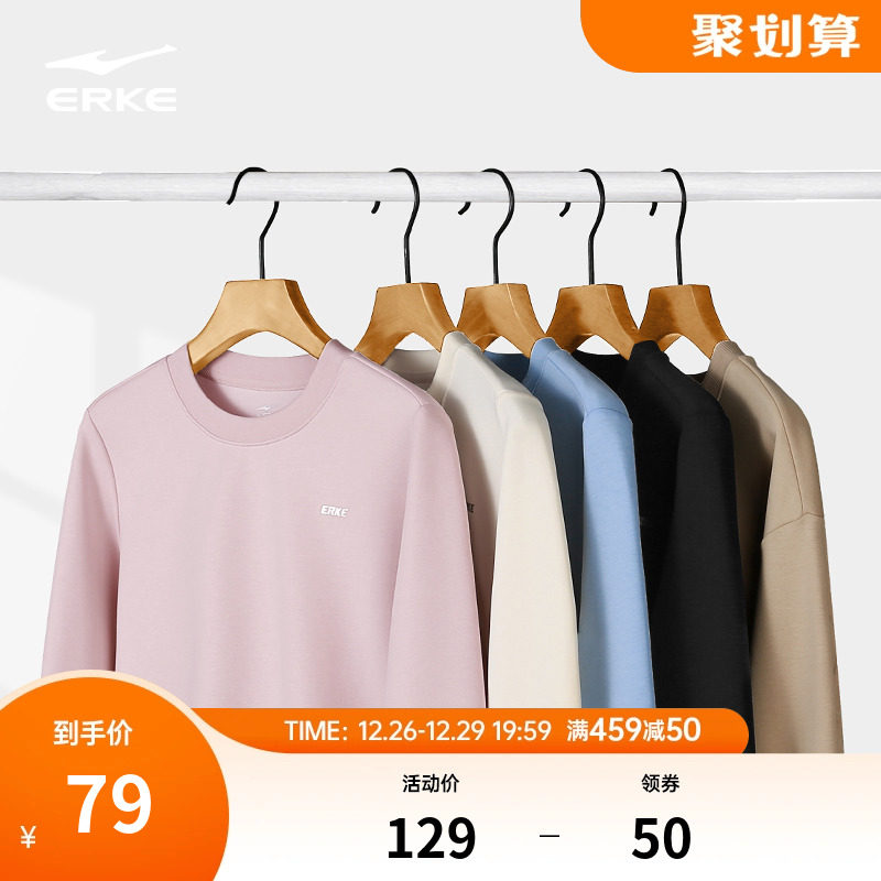 鸿星尔克卫衣女冬季女士长袖女款运动服圆领加绒卫衣套头上衣女装