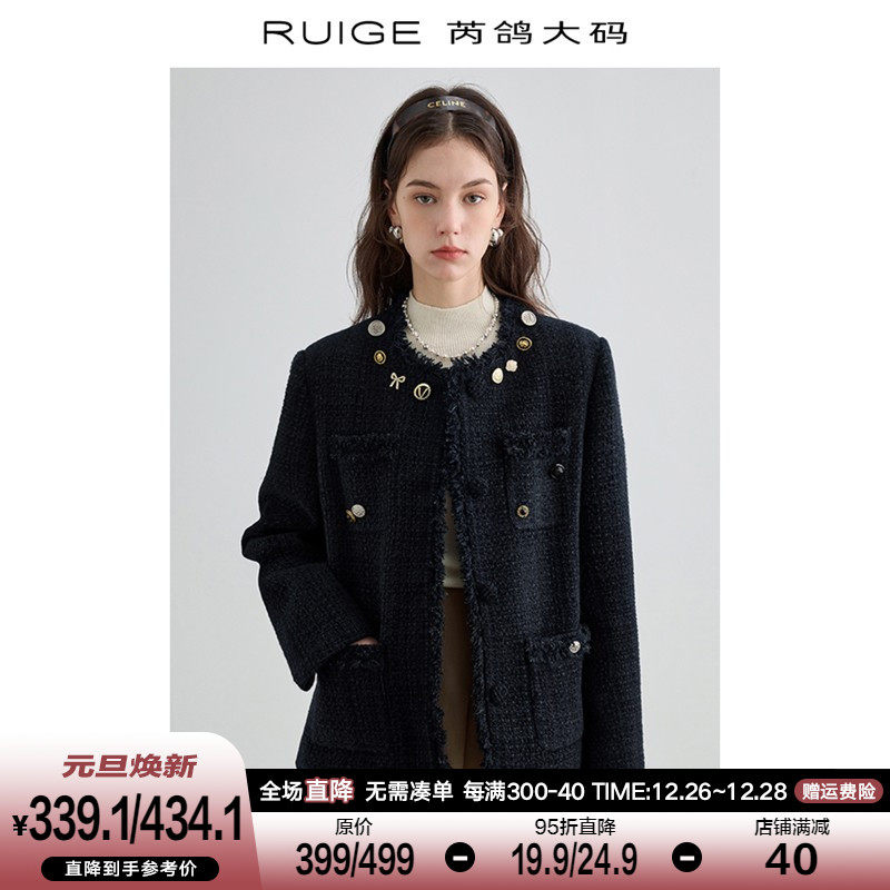 芮鸽大码小香风毛呢外套女2023新款爆款冬季胖mm羊毛呢小个子气质