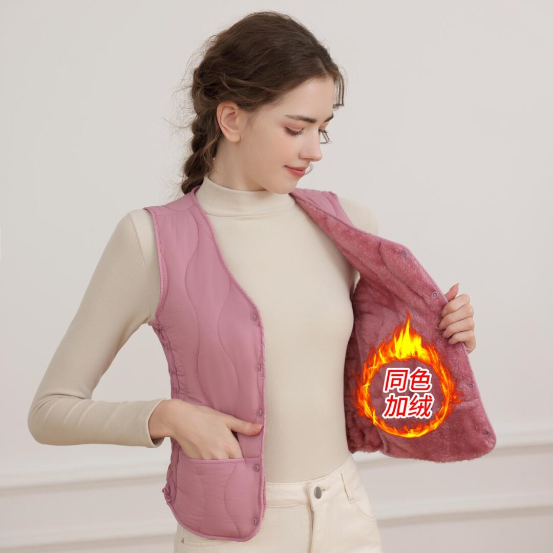 马夹女式新款2023秋冬女款夹棉马甲加绒加厚修身内穿背心短款坎肩