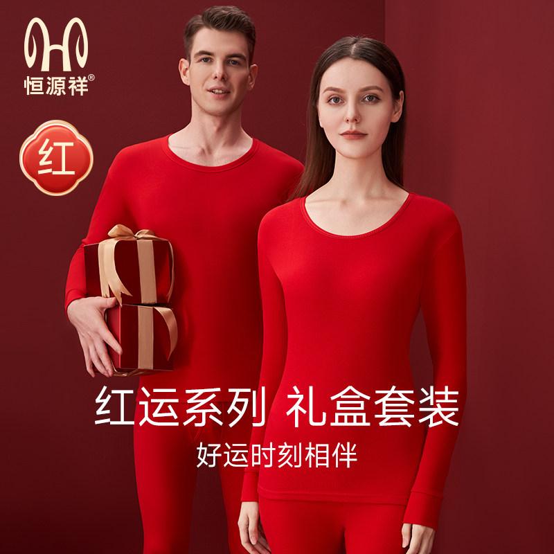 恒源祥本命年女装秋冬内衣套装男装红色秋衣秋裤保暖结婚龙年情侣