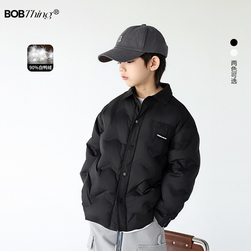 男童冬装帅气羽绒衬衫2023新款儿童翻领羽绒服90白鸭绒外套潮童装