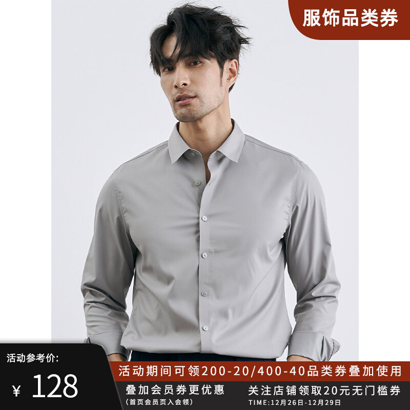 【云感】利郎官方旗舰 白衬衣2023秋新款黑色结婚长袖男士衬衫