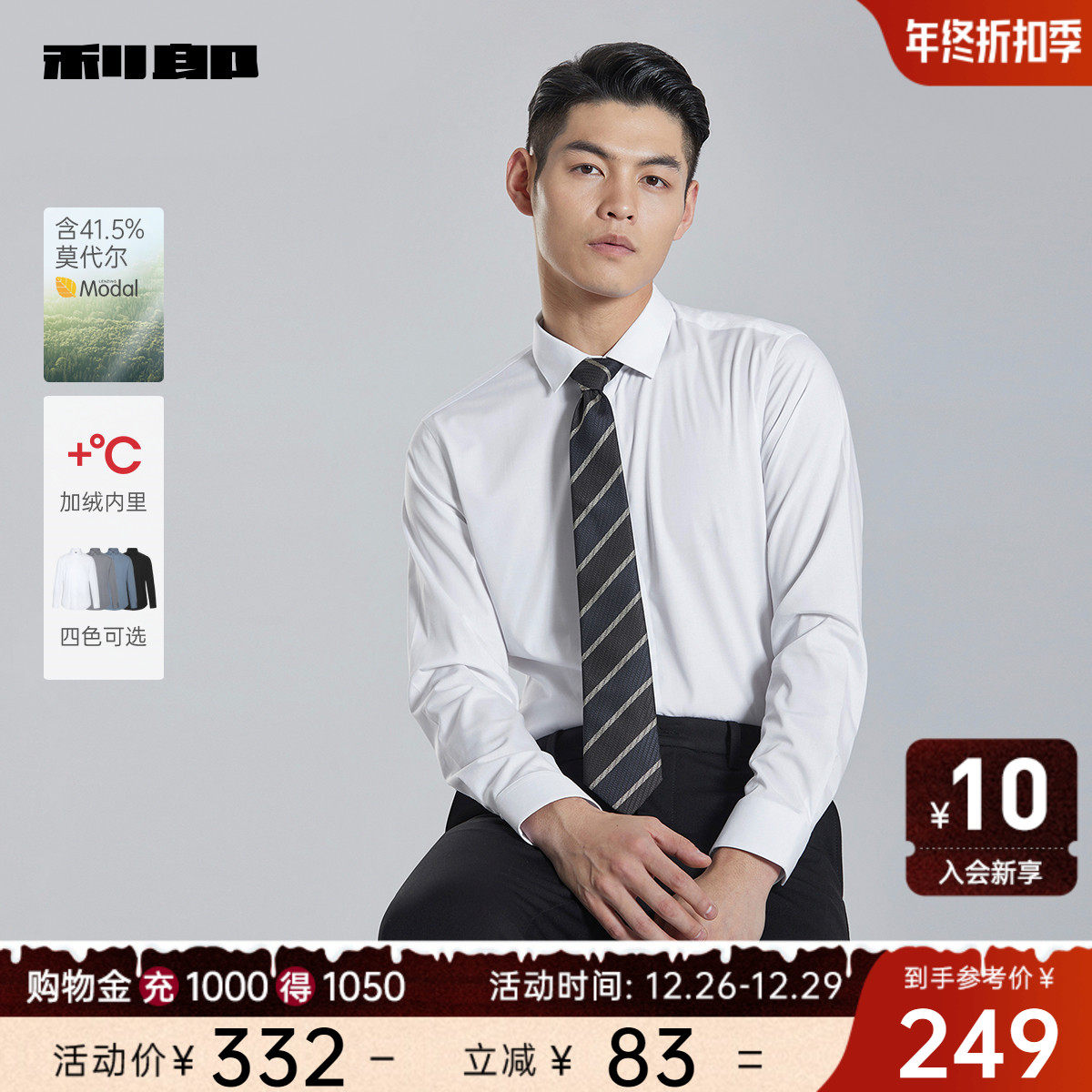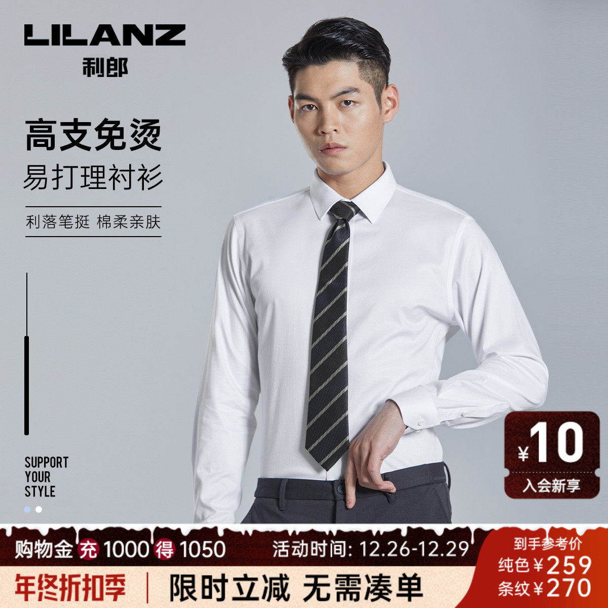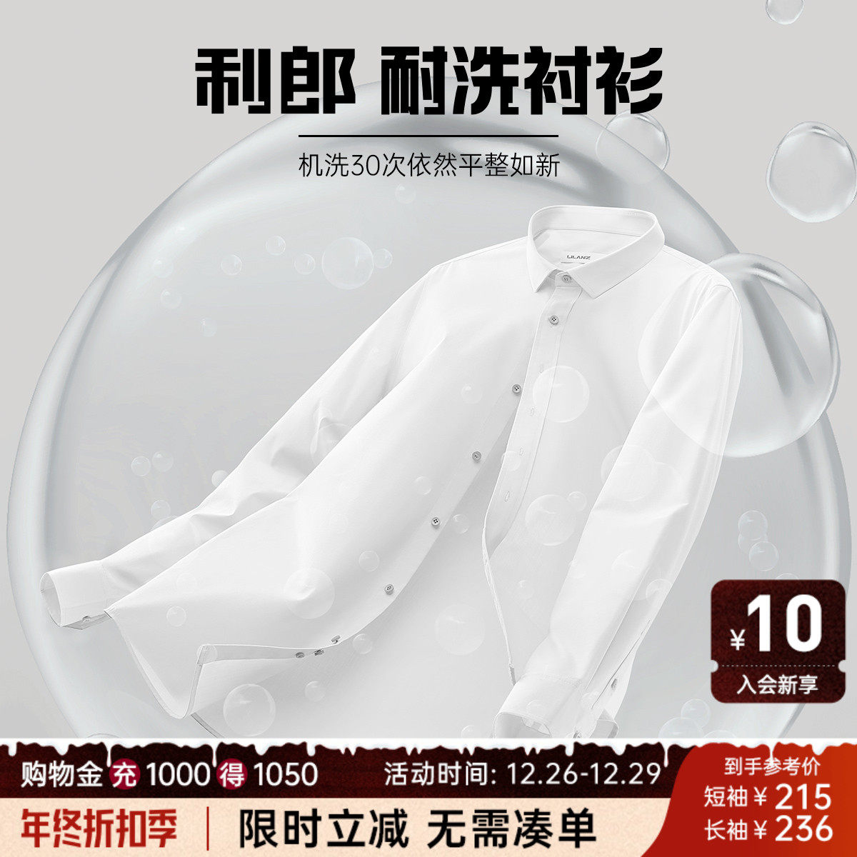 【免烫易打理】利郎长袖衬衫男白色纯棉西装商务休闲衬衣结婚正装