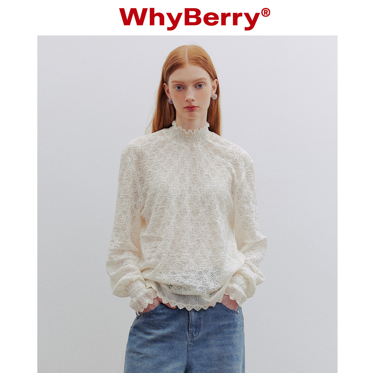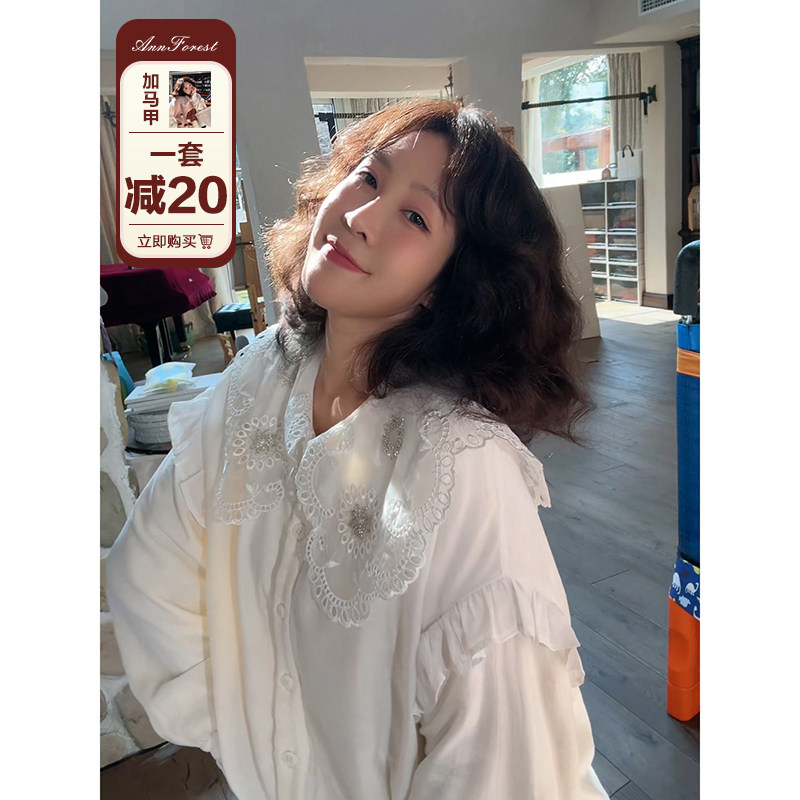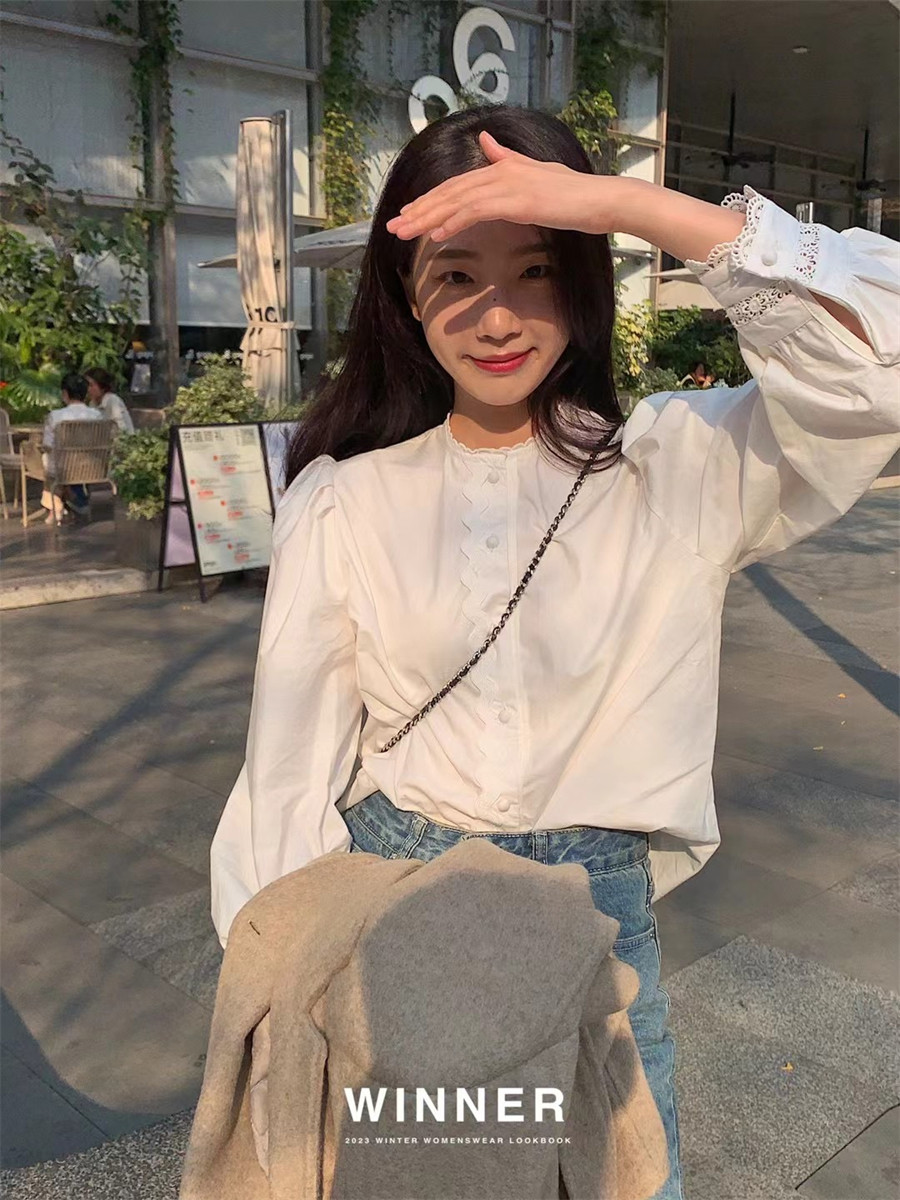 WINNER草莓家白色泡泡袖设计衬衫女花边宫廷风氛围感小众气质衬衣