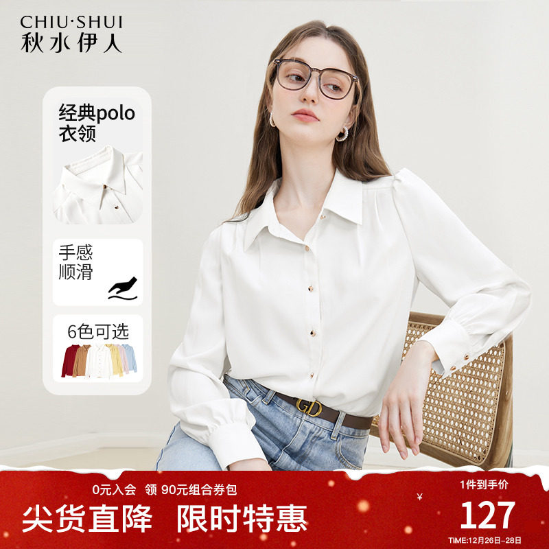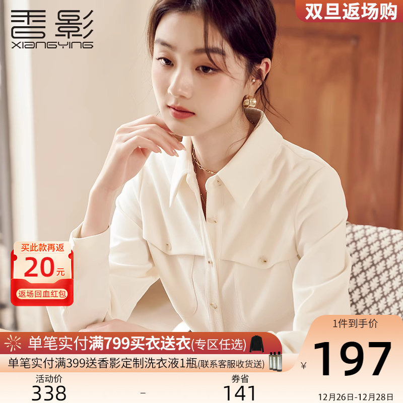 香影衬衫女长袖2023秋冬季新款米白职业通勤正肩衬衣宽松翻领上衣