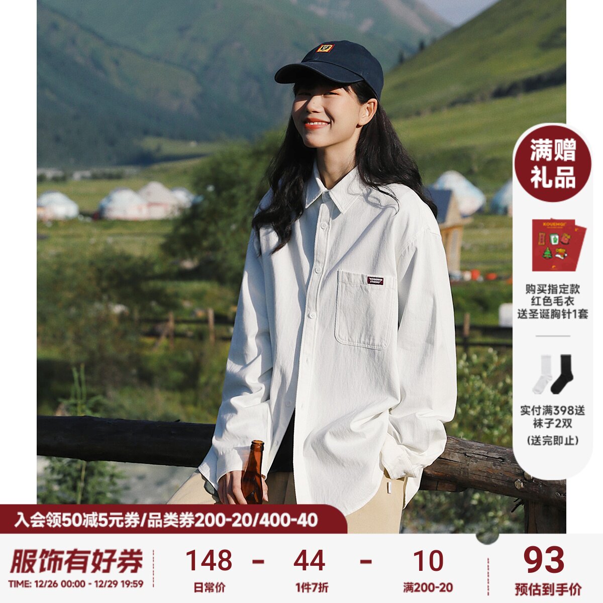 唐狮2023秋季新款白色长袖衬衫男高级感日系休闲宽松情侣衬衣外套