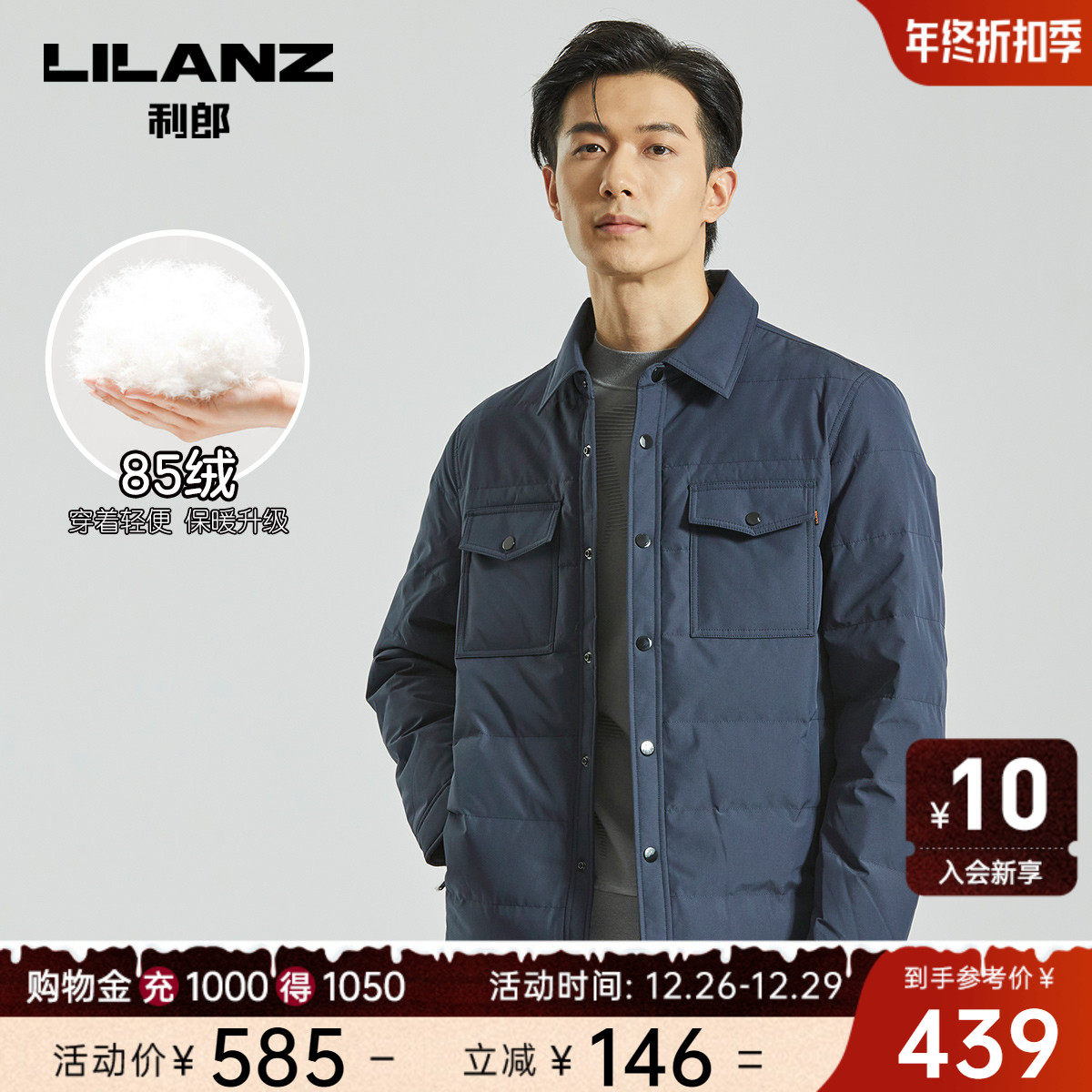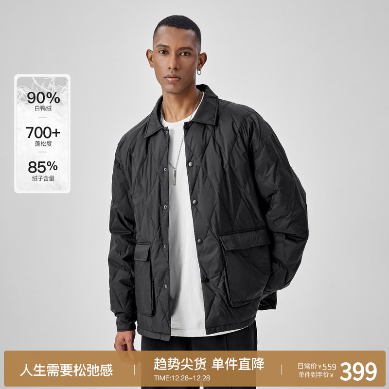 利郎官方衬衫羽绒服男士白鸭绒潮流翻领冬季新款轻薄保暖外套