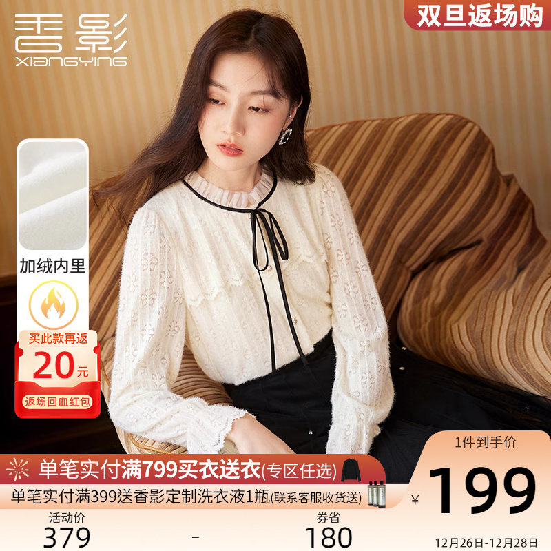 香影立领蕾丝衬衫女2023秋冬新款内搭衬衣米白木耳边法式长袖上衣