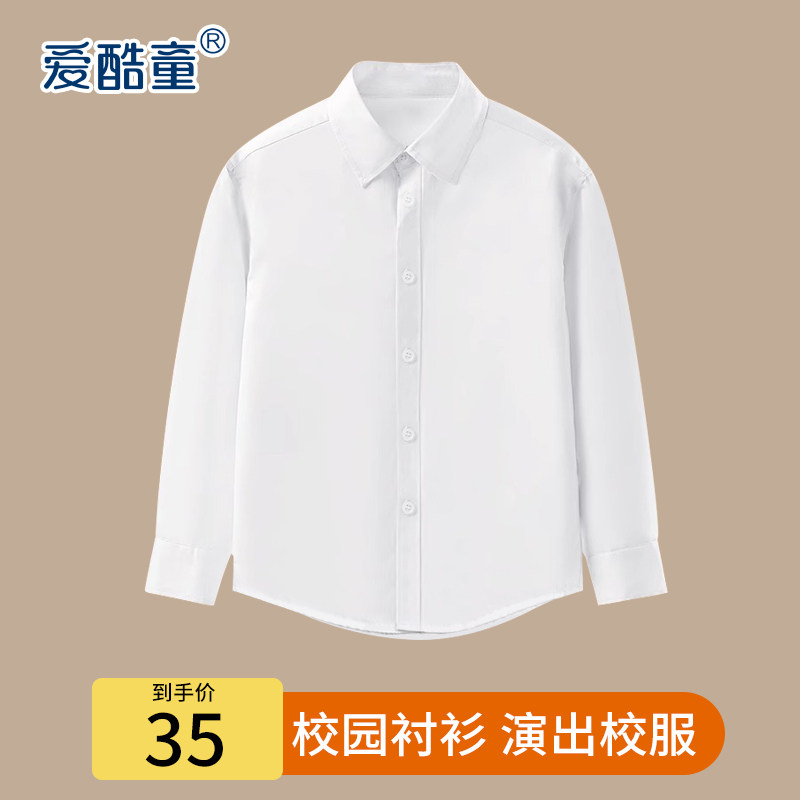 百搭白色衬衫儿童长袖衬衫套装小学生校服白衬衣儿童薄款长袖表演