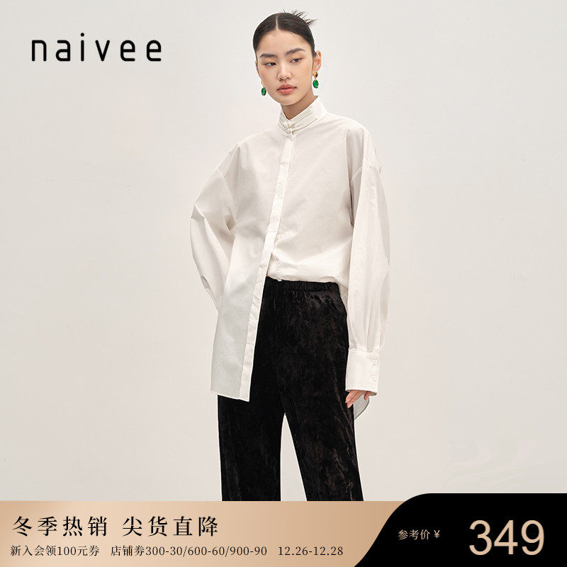 博主同款naivee纳薇新中式国风盘扣匹马棉小众设计白衬衫男女同款