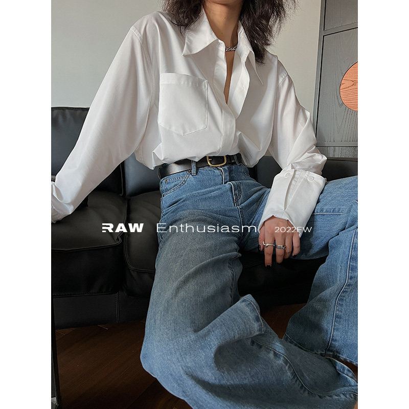 范洛2023春季新款白色衬衫女设计感小众宽松复古内搭上衣衬衣长袖