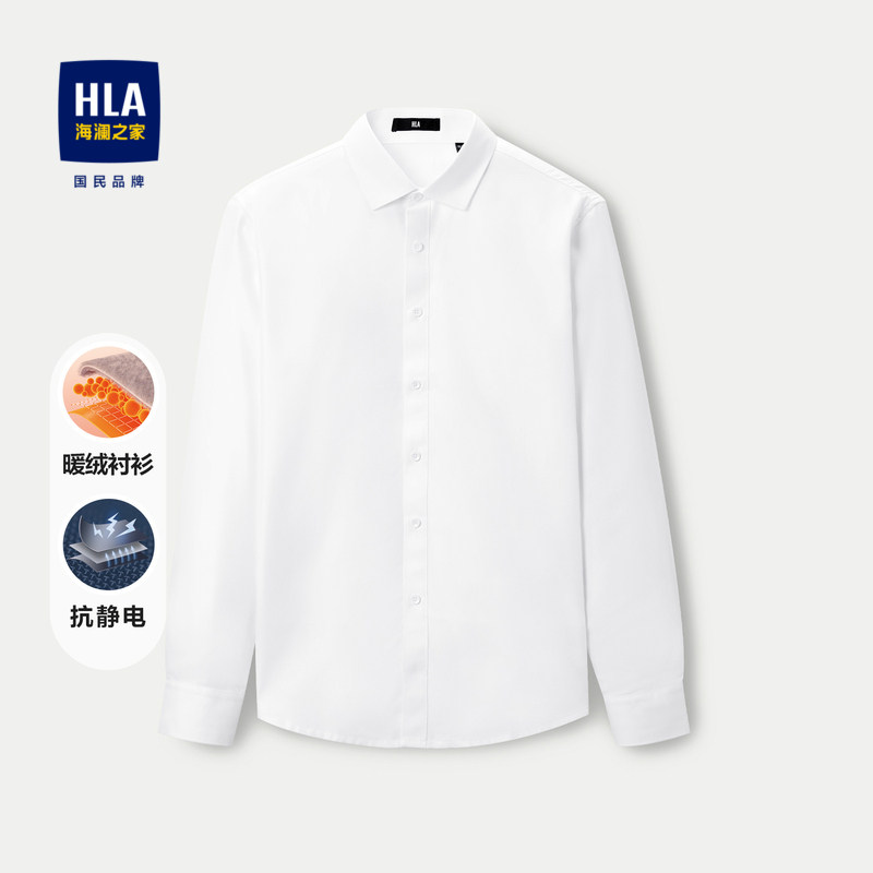 HLA/海澜之家暖绒长袖衬衫23秋冬新抗静电加绒加厚保暖白衬衣男