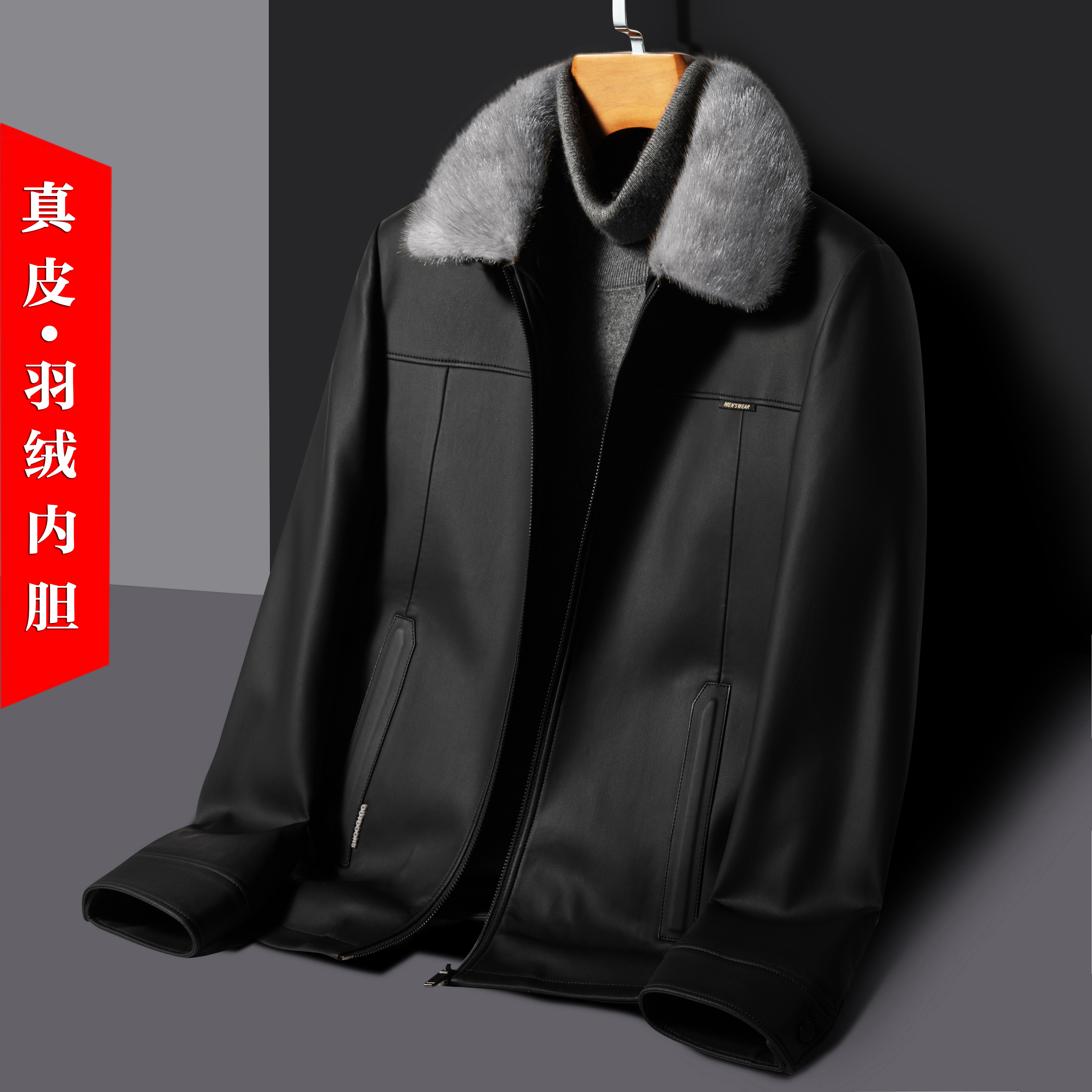 冬季海宁中老年真皮皮衣男爸爸装中长款绵羊皮貂内胆皮草大衣外套