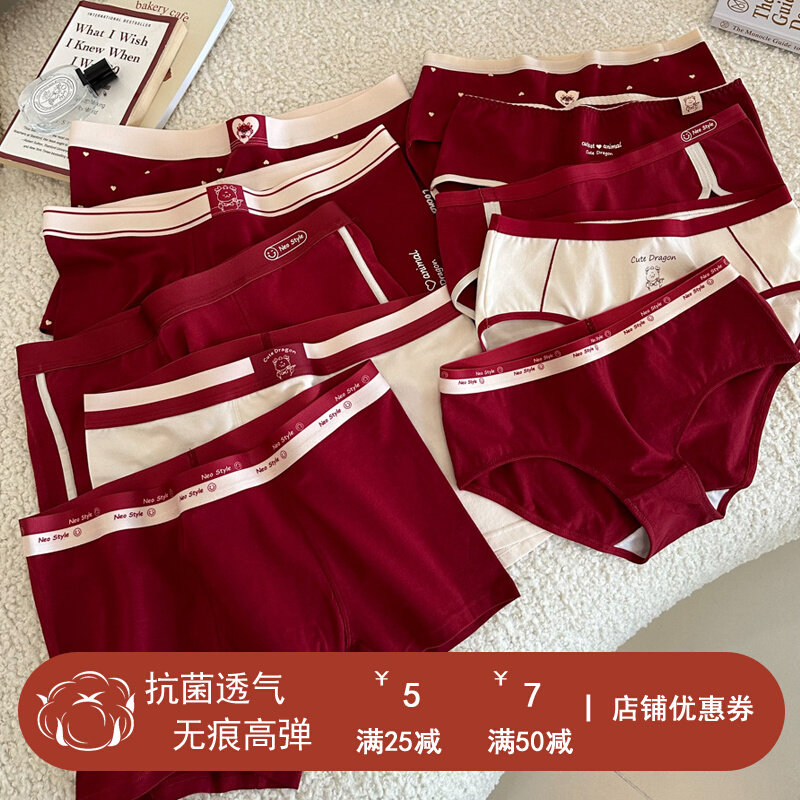 本命年纯棉情侣内裤大红色结婚夫妻抗菌透气四角裤男女平角短裤衩