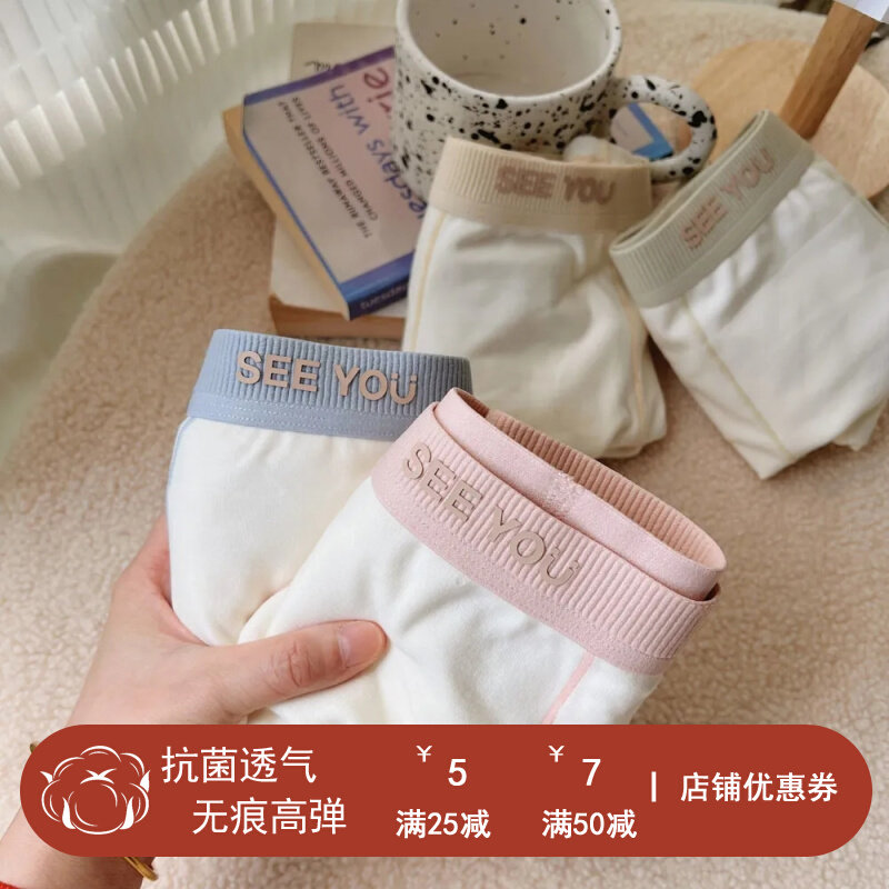 【沐风秋觉】运动RC棉简约字母款女士内裤中腰桑蚕丝底裆ins无痕