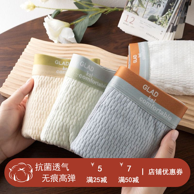 有一棵树日系纯棉中腰无痕全棉档银纺抑菌不夹臀女士内裤三角裤