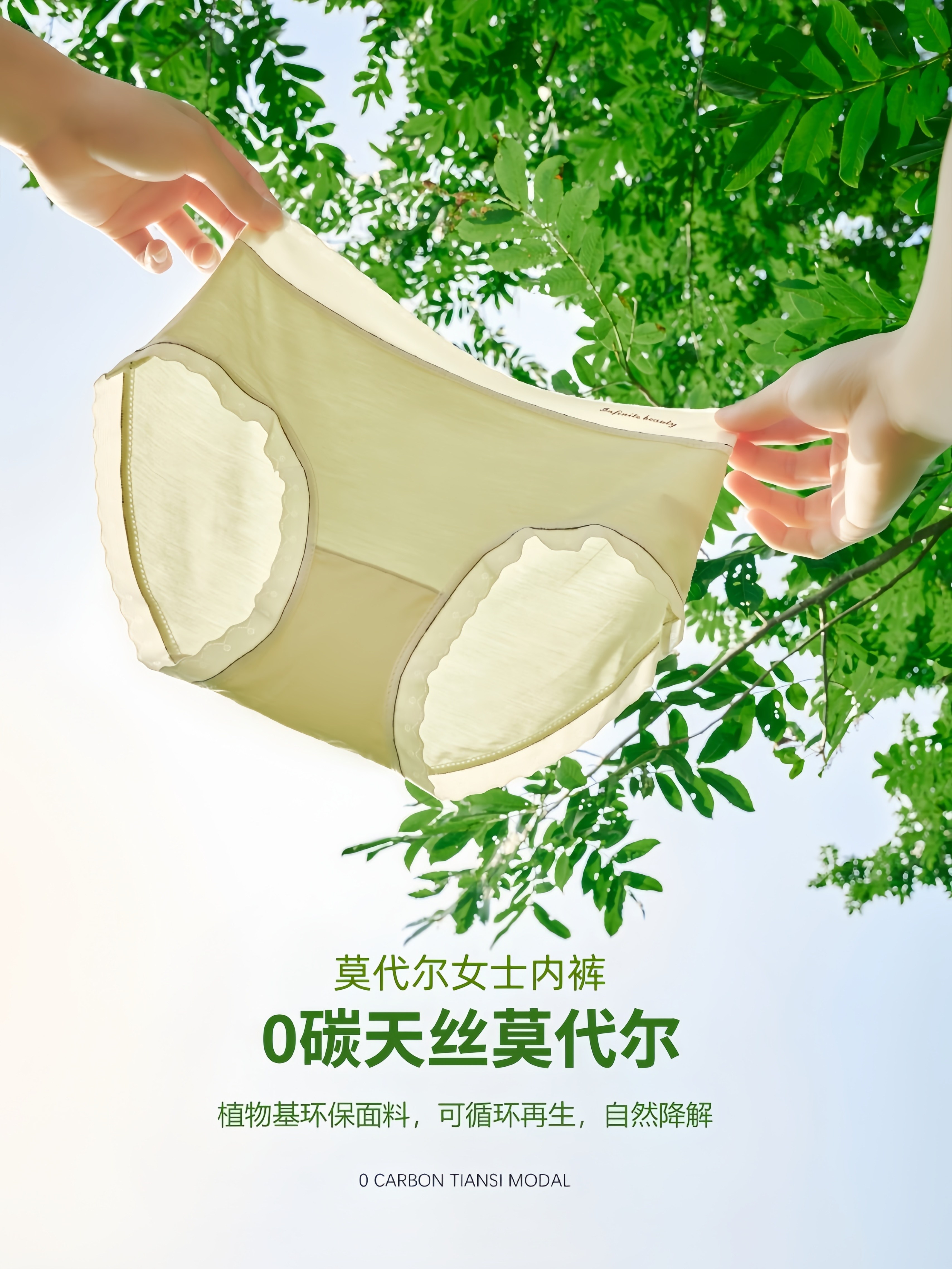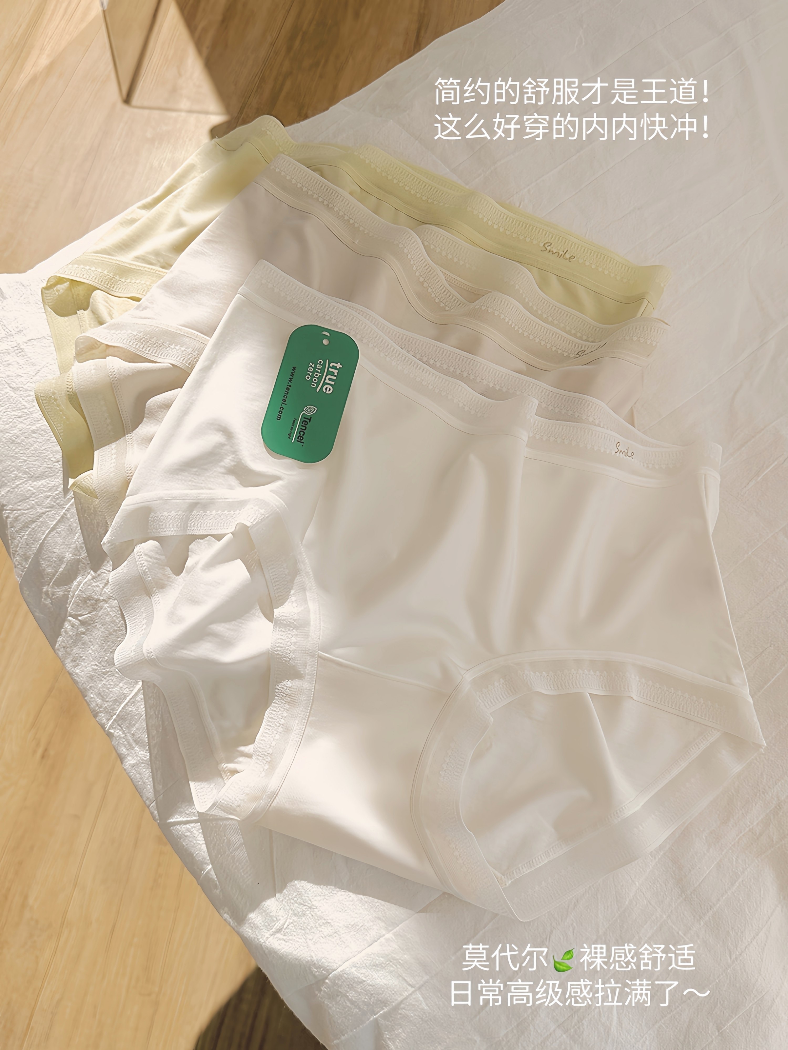 【零碳环保】80S兰精莫代尔中腰内裤女桑蚕丝底裆抗菌舒适logo款