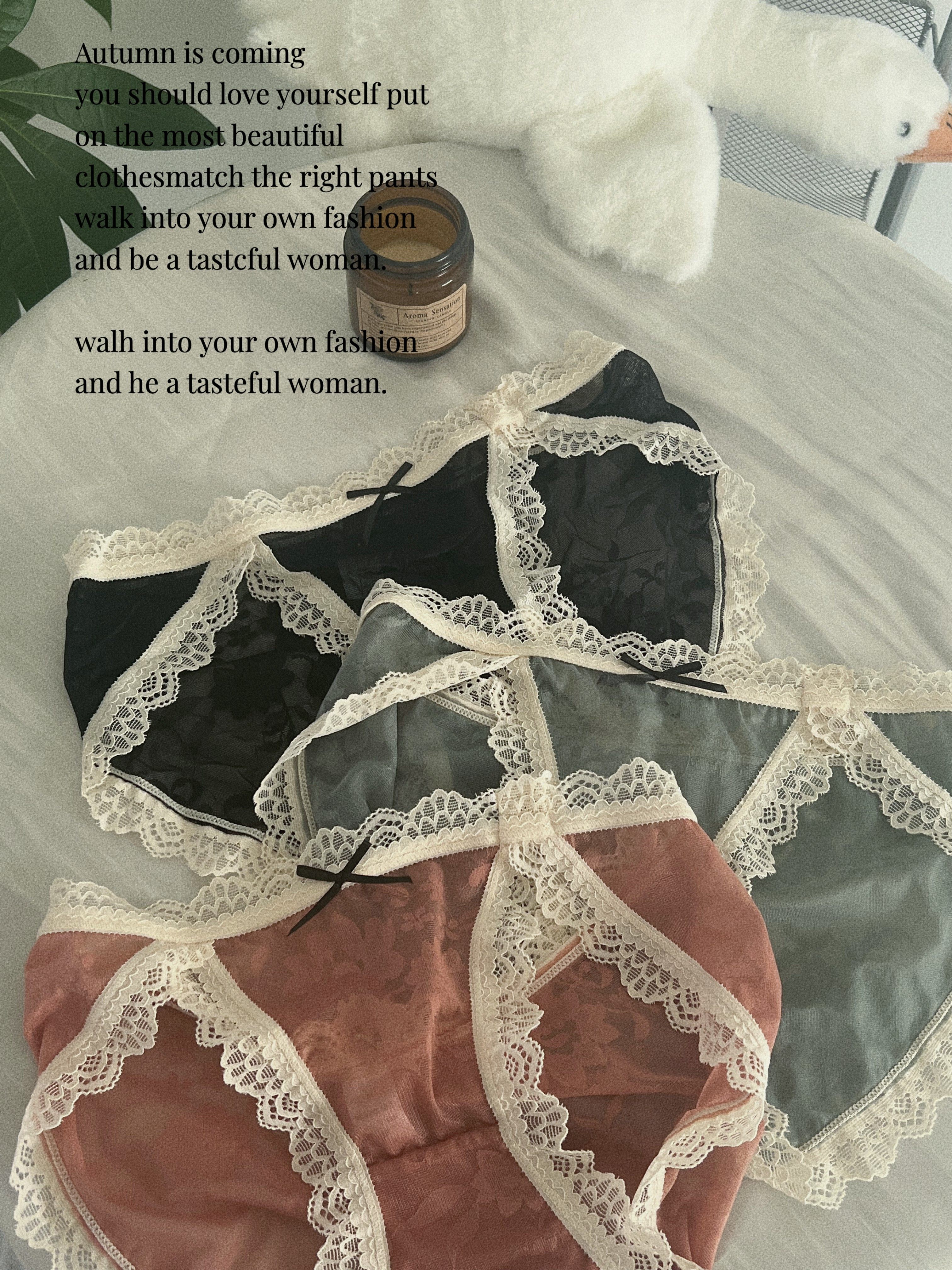 【奶油泡芙】超薄无痕5A级抗菌桑蚕丝底裆透气纯色蕾丝中腰内裤女