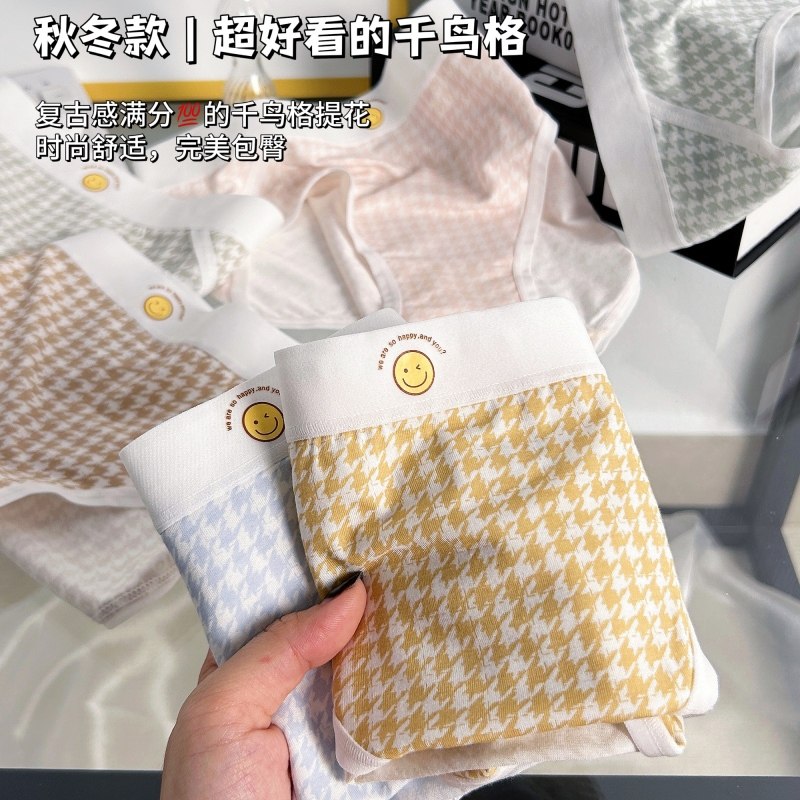 【梦幻格纹】ins风简约无痕纯棉款中腰女士内裤撞色可爱少女蝴蝶